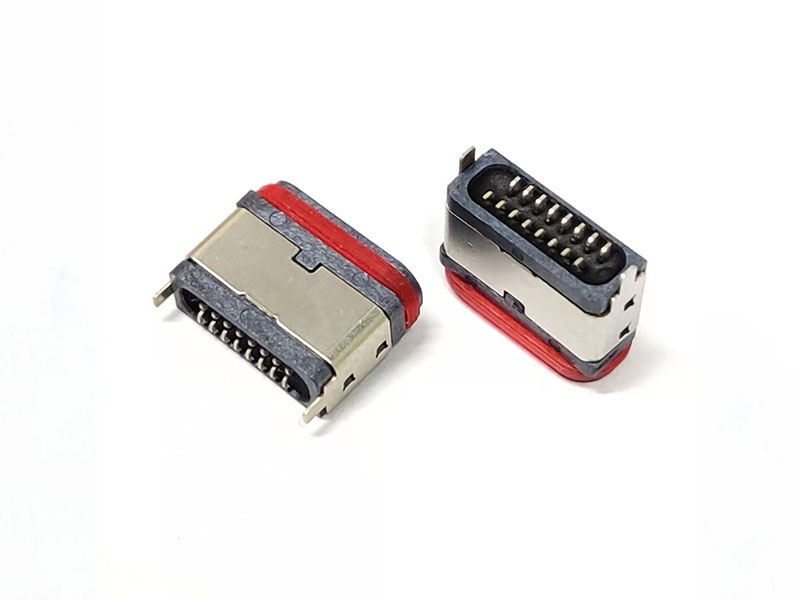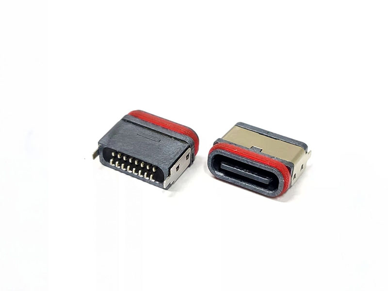 TYPE-C 16P防水母座 立貼全塑U型防水包膠圈款