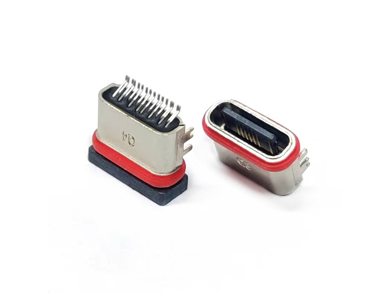 TYPE-C 16P防水母座 板上四腳帶柱 U型口粉末冶金