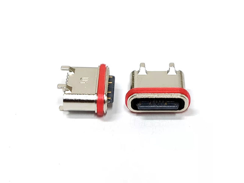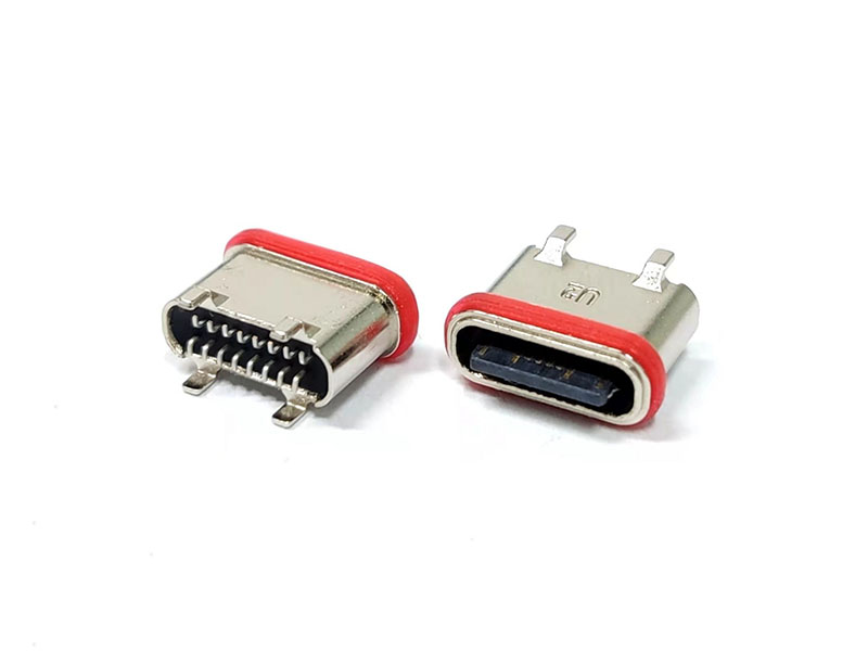 TYPE-C 16P防水母座 立式貼板四腳插 U型口粉末冶金外殼