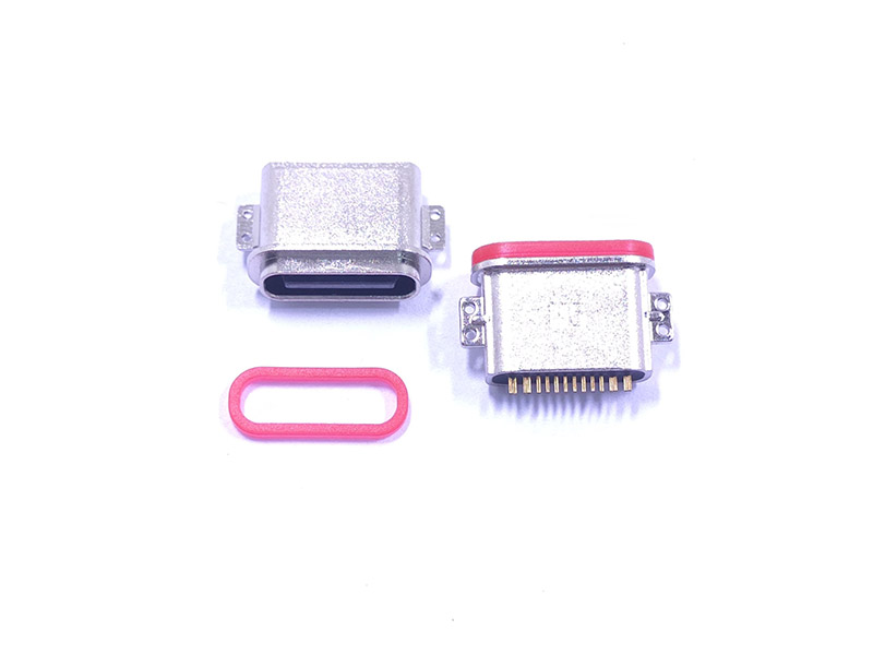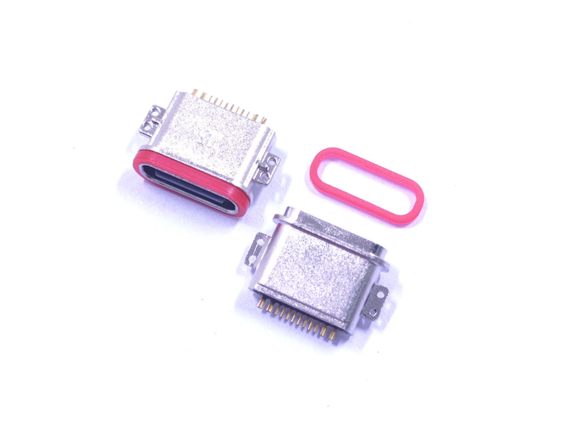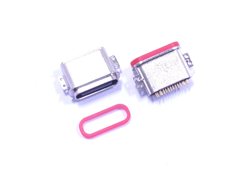 TYPE-C 16P防水母座 兩腳沉板0.8/1.2/1.6 頂膠款粉末冶金